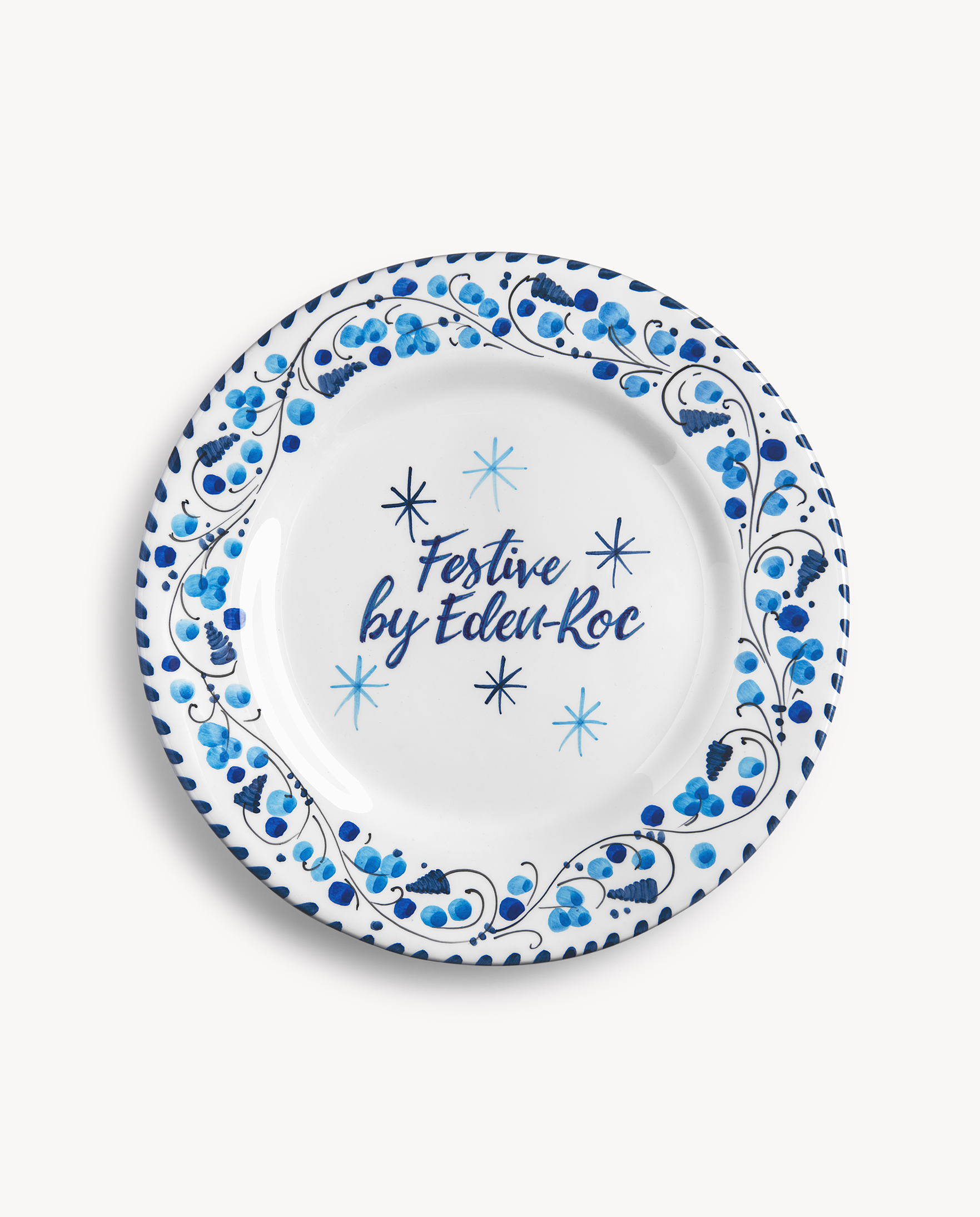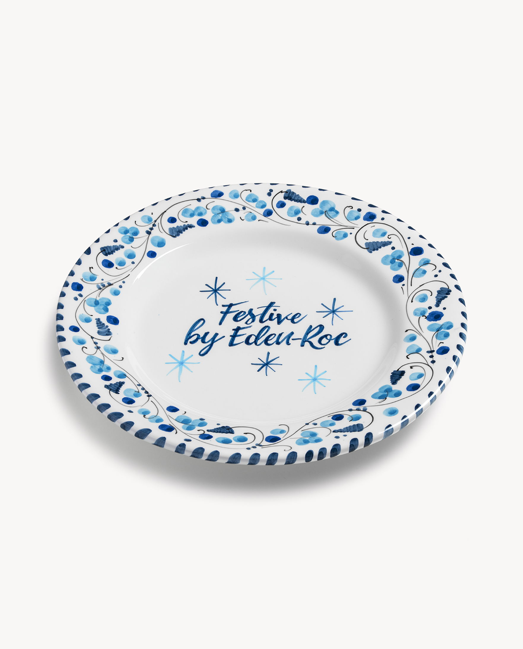 Sublimez vos moments de fête avec cette assiette Popolo de 25 cm, conçue exclusivement pour l’Hôtel du Cap-Eden-Roc. Entièrement façonnée et peinte à la main en Italie, elle se pare de motifs bleus qui célèbrent à la fois l’enchantement des fêtes de fin d’année et l’identité délicate de la Maison, apportant une touche lumineuse à chaque repas. Au fil du repas, elle révèle l’élégante inscription « Festive by Eden-Roc », un détail subtil qui confère à chaque instant partagé la grâce intemporelle et la poésie hivernale de la Riviera.