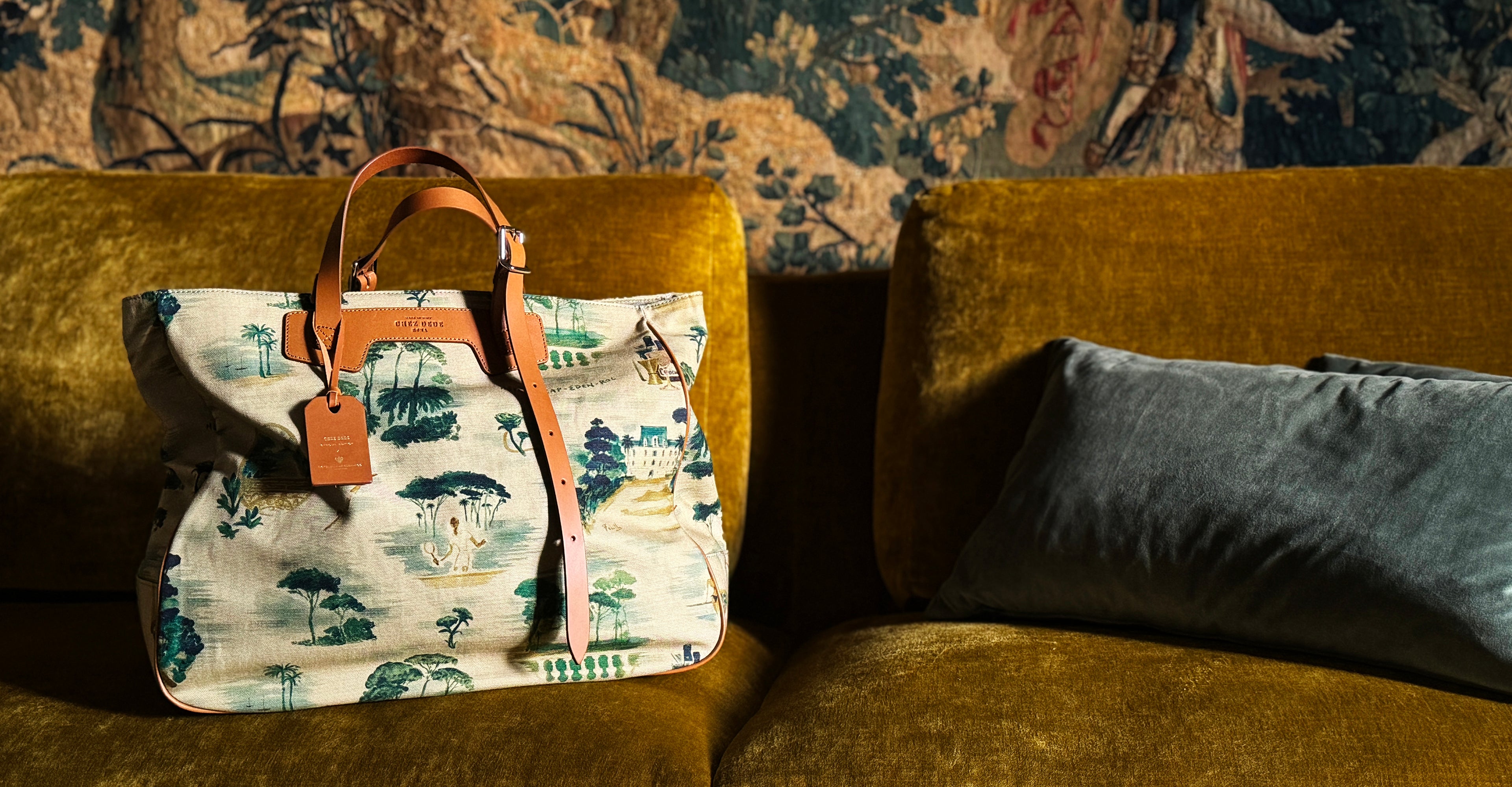 - Matières : 100 % coton, finitions 100 % cuir