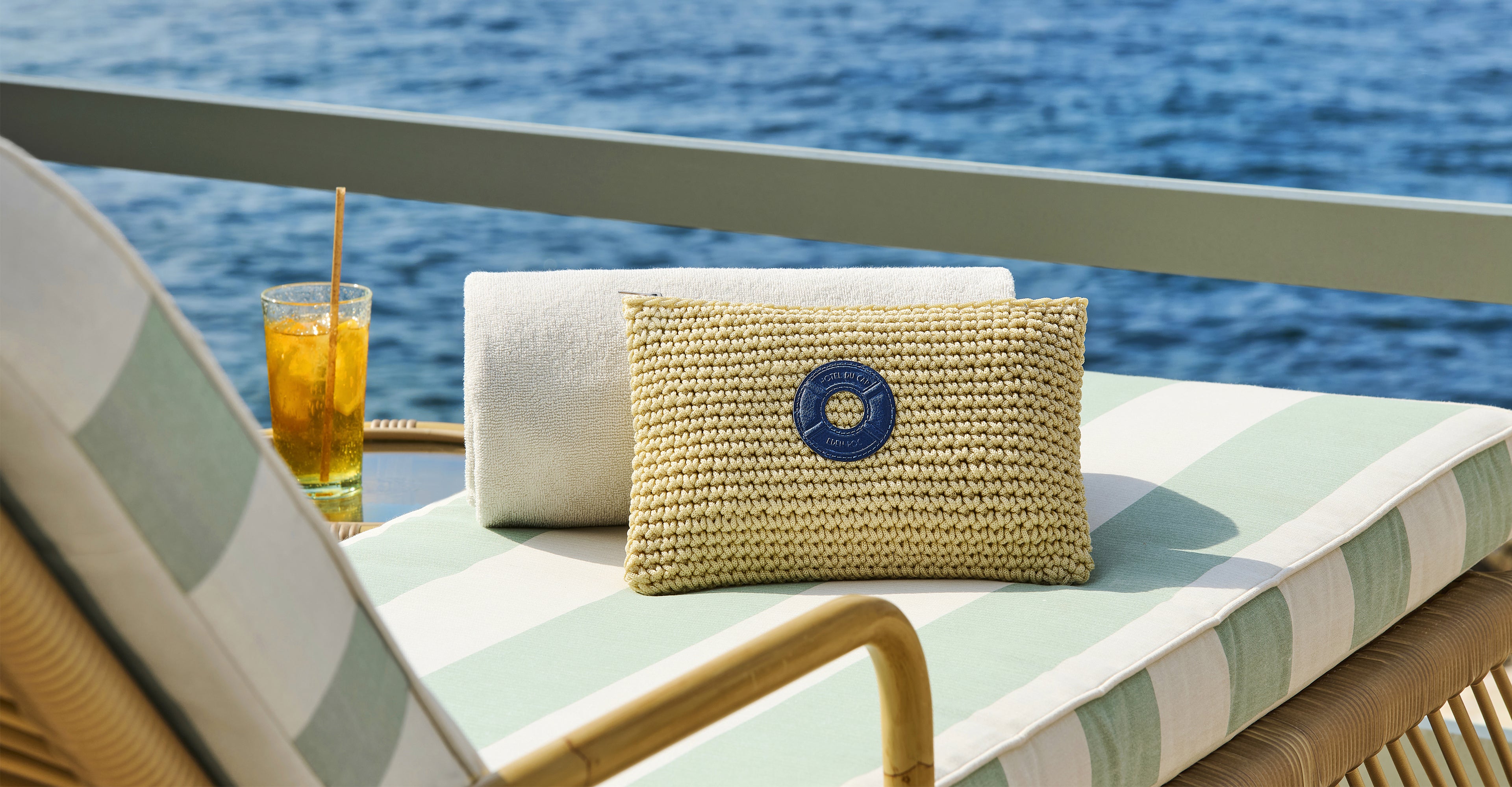 Tout en contraste et en délicatesse, cette pochette beige crochetée à la main s’inspire de l’élégance naturelle de la Riviera. Son tissage en corde texturée lui confère un charme artisanal, rehaussé d’un patch bleu marine embossé de l’iconique bouée de l'Hôtel du Cap-Eden-Roc. Parfaite pour accompagner vos essentiels avec simplicité, elle se glisse dans un sac ou se porte seule au gré de vos envies, comme une touche discrète de soleil et d’élégance.
