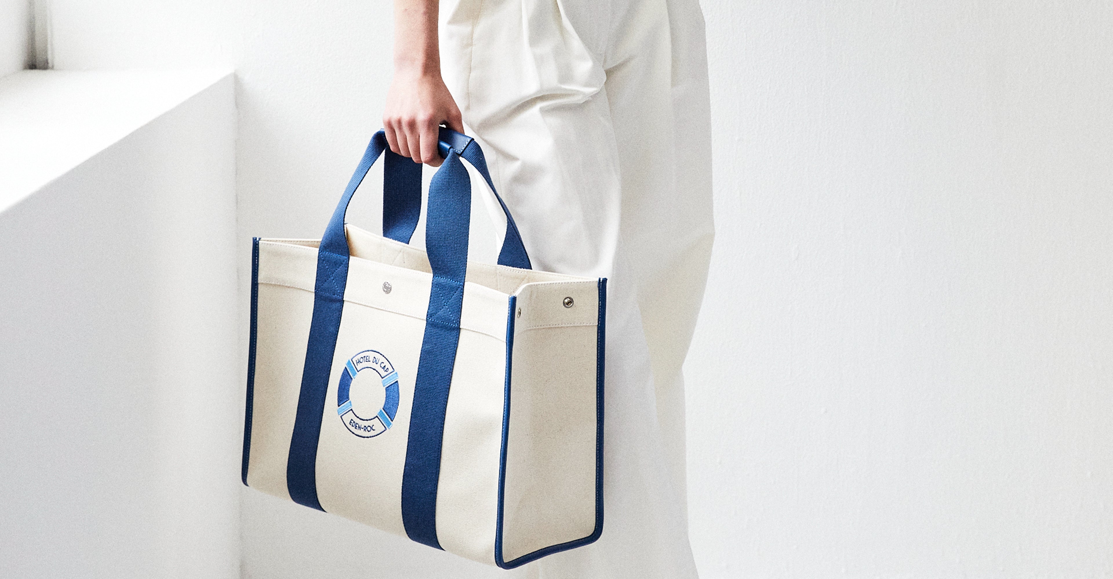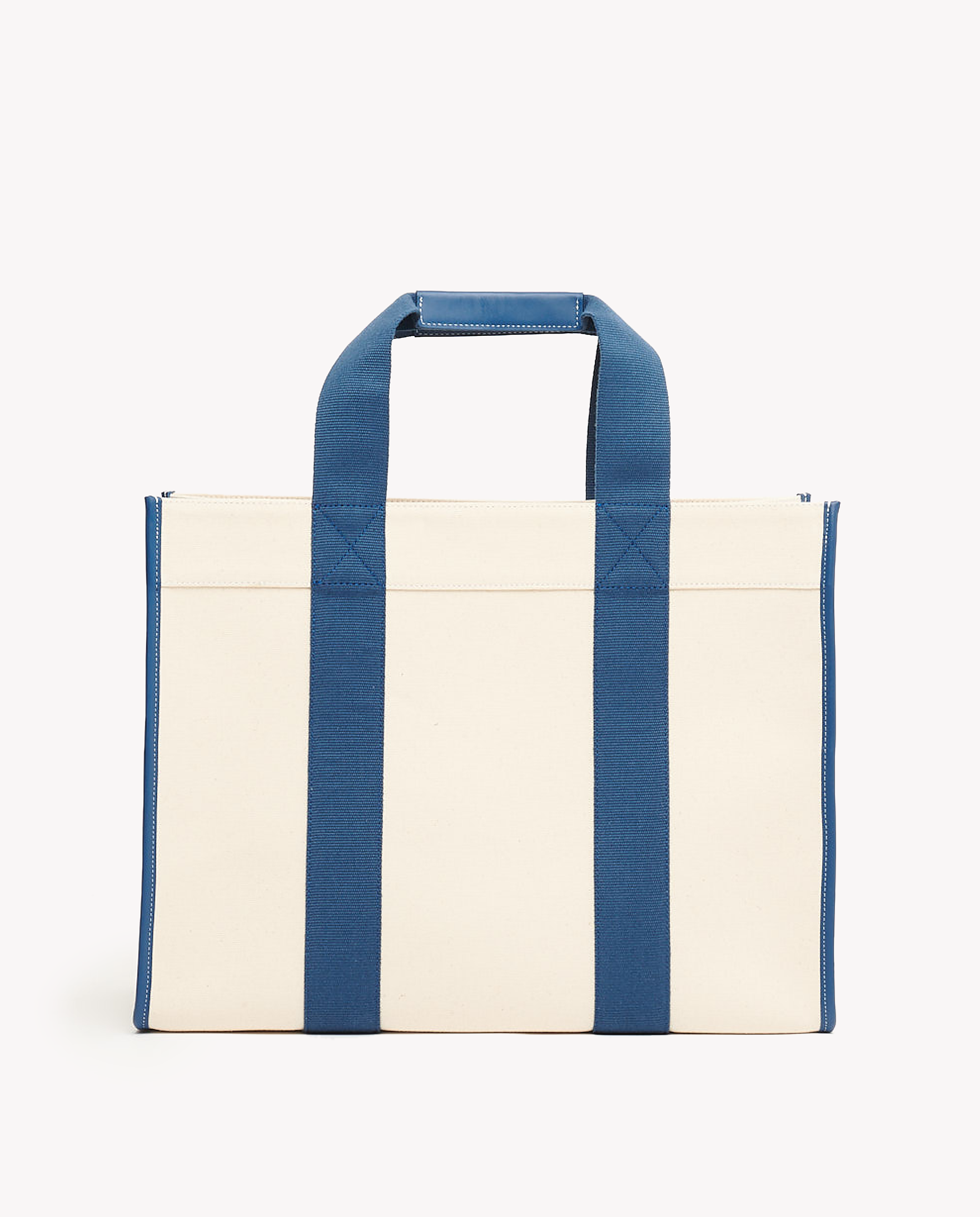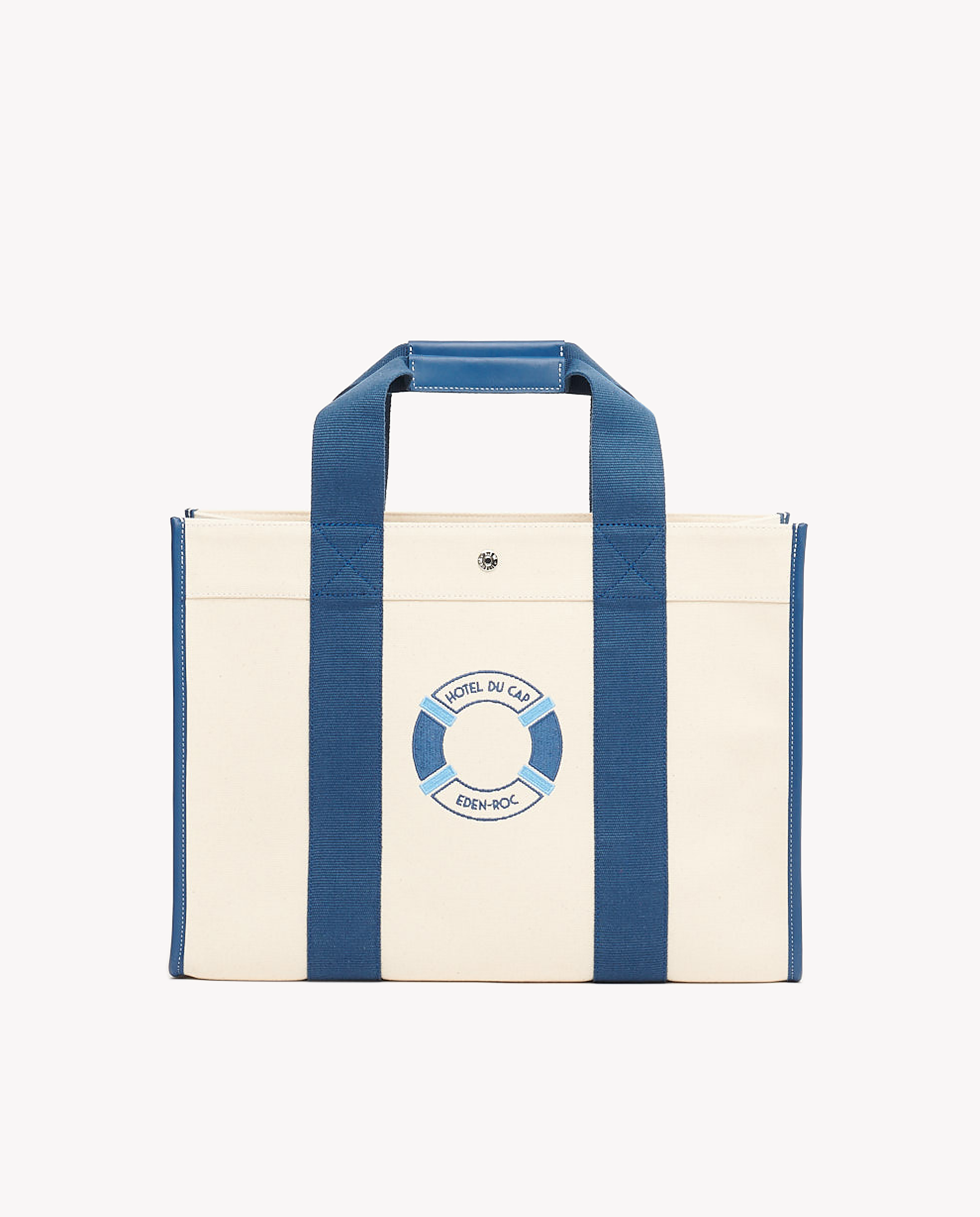 Complete your sunny season wardrobe with the Eden Roc Large Traveller Bag by Rue de Verneuil. Crafted from strong and durable cotton canvas, this roomy top-handle bag is a stylish everyday companion and the perfect carryall for weekend escapes. Embroidered with the iconic Hotel du Cap-Eden-Roc buoy, it adds a chic, Riviera touch to your look.