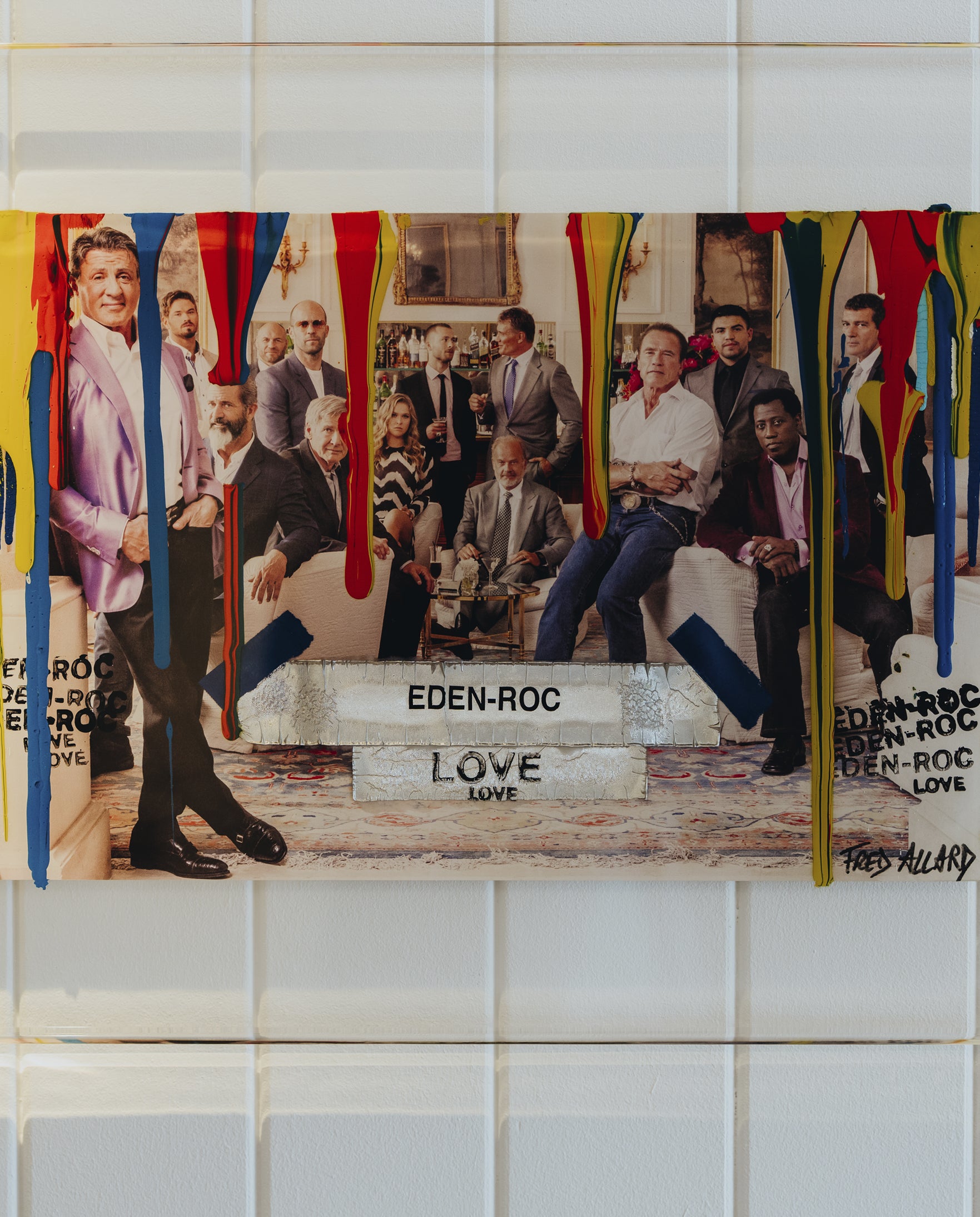 A legendary gathering of stars at Hotel du Cap-Eden-Roc. Fred Allard reinvents the group portrait with a bold, urban aesthetic. Blending luxury, unity and creative energy, the piece explores fame and elegance with expressive freedom and emotional strength.